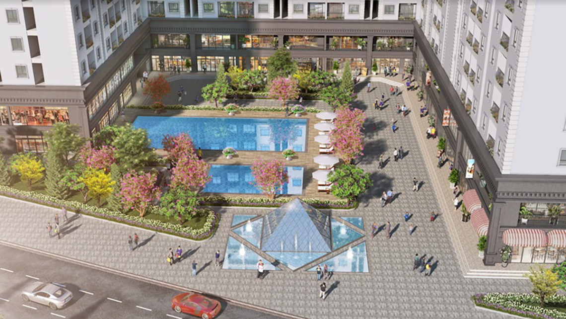 – TIỆN ÍCH NỘI KHU CHUNG CƯ: Biểu tượng Khối kim tự tháp Louvre; Hồ bơi; Sân vườn trên mái; Shophouse khối đế; Hầm để xe thông minh; Trạm sạc xe điện…