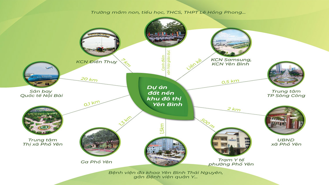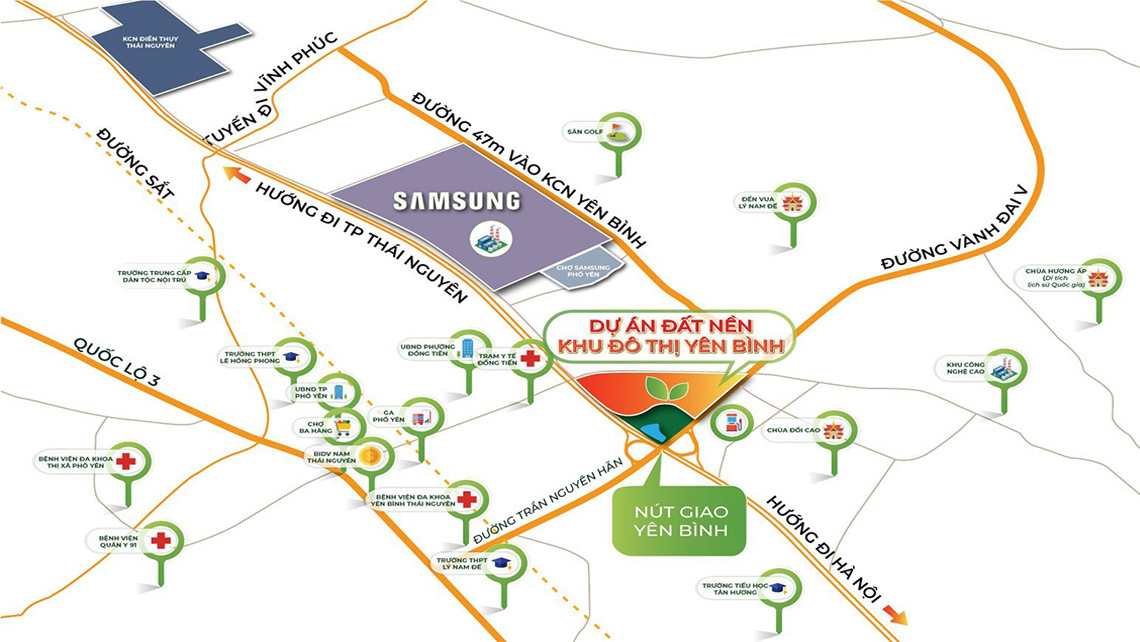 Khu đô thị Yên Bình tọa lạc tại vị trí đắc địa ngay trung tâm hành chính mới thị xã Phổ Yên, là nơi tập trung hệ thống cơ quan hành chính, giáo dục, y tế của khu vực. Dự án nằm ngay cạnh nút giao Yên Bình – QL3, cao tốc Hà Nội – Thái Nguyên, tuyến đường 47m, đường gom khu công nghiệp, đường vành đai 5,… kết nối thẳng tới KCN Samsung lớn nhất Thái Nguyên và dễ dàng di chuyển đến các tỉnh thành lân cận như Hà Nội, Thái Nguyên, Bắc Ninh, Bắc Giang, Vĩnh Phúc