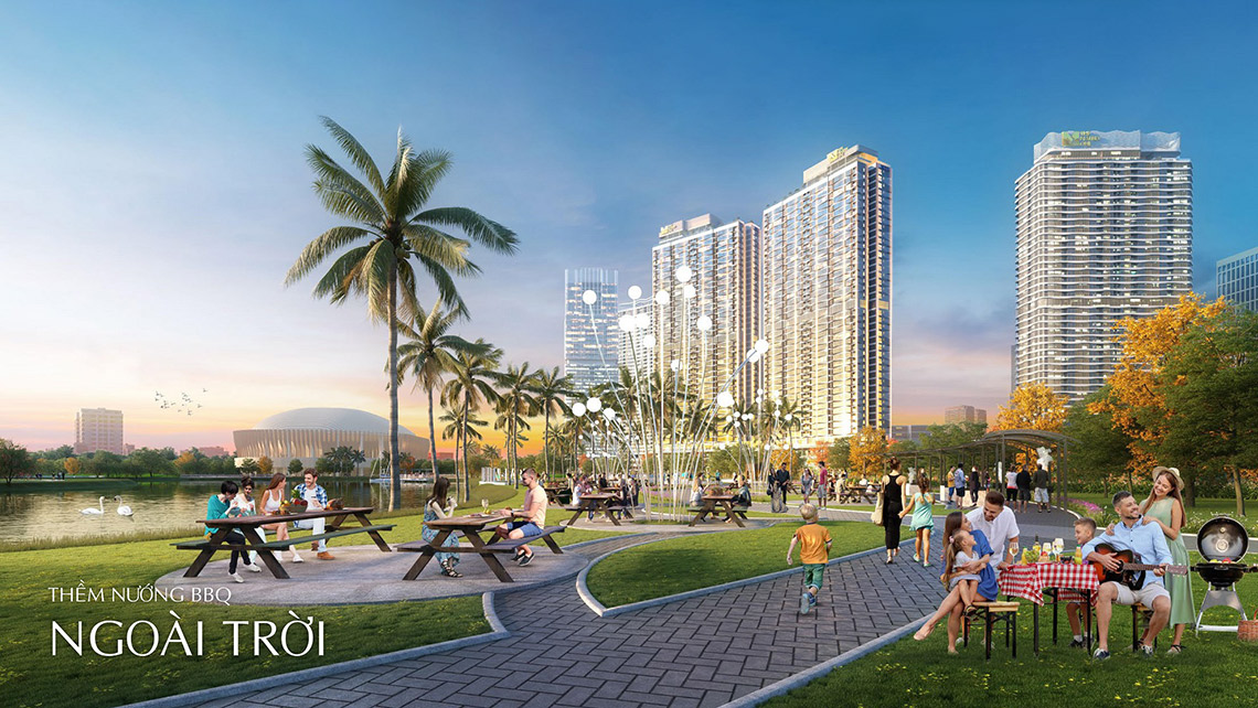 | Hồ cảnh quan Đường chạy bộ Đường dạo bộ Sân chơi trẻ em Đồi cỏ Khu tập gym Sân cỏ lớn Chòi cảnh quan Thềm nghỉ ven hồ Khu BBQ |